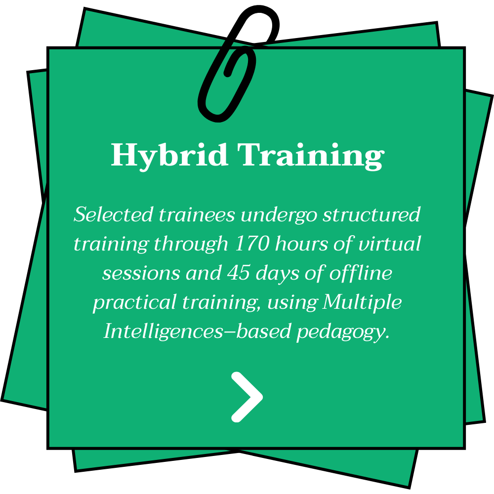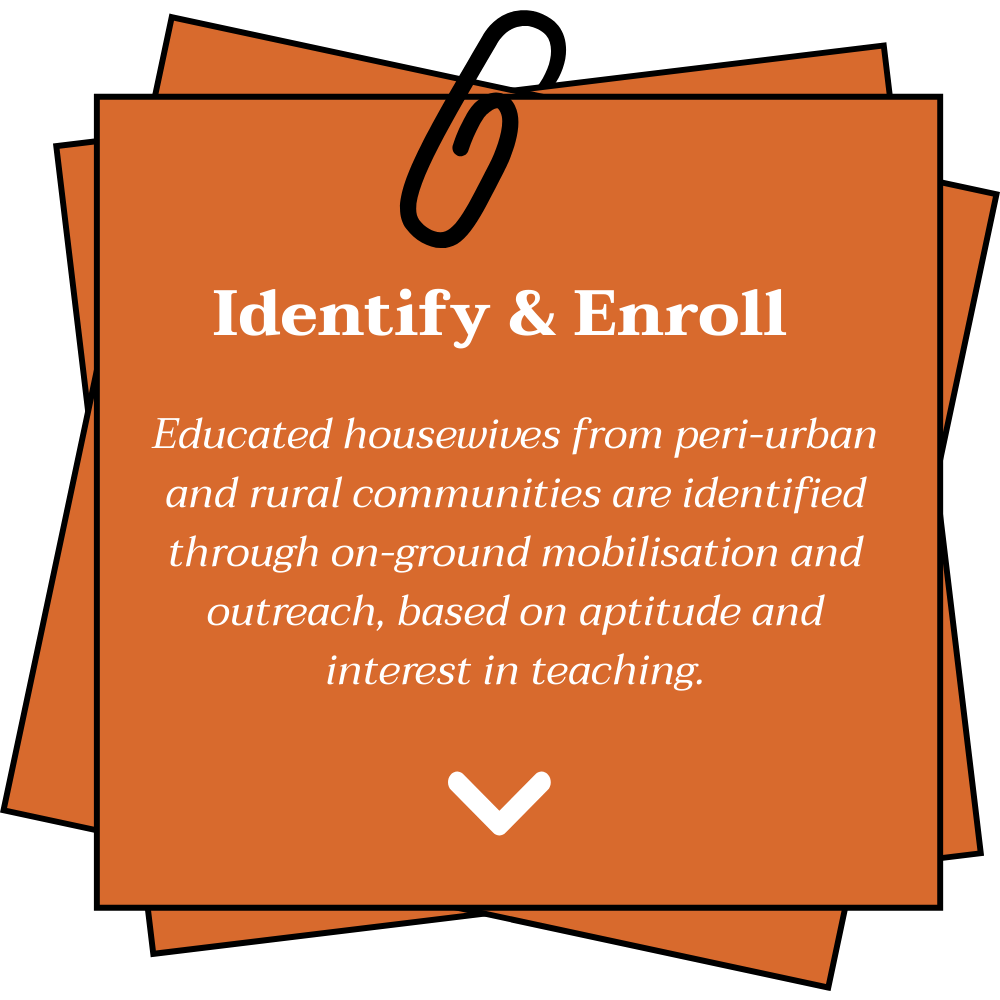 Trains educated housewives to work as part-time teachers in primary schools, strengthening foundational literacy and numeracy (FLN) while creating flexible, local livelihood opportunities.