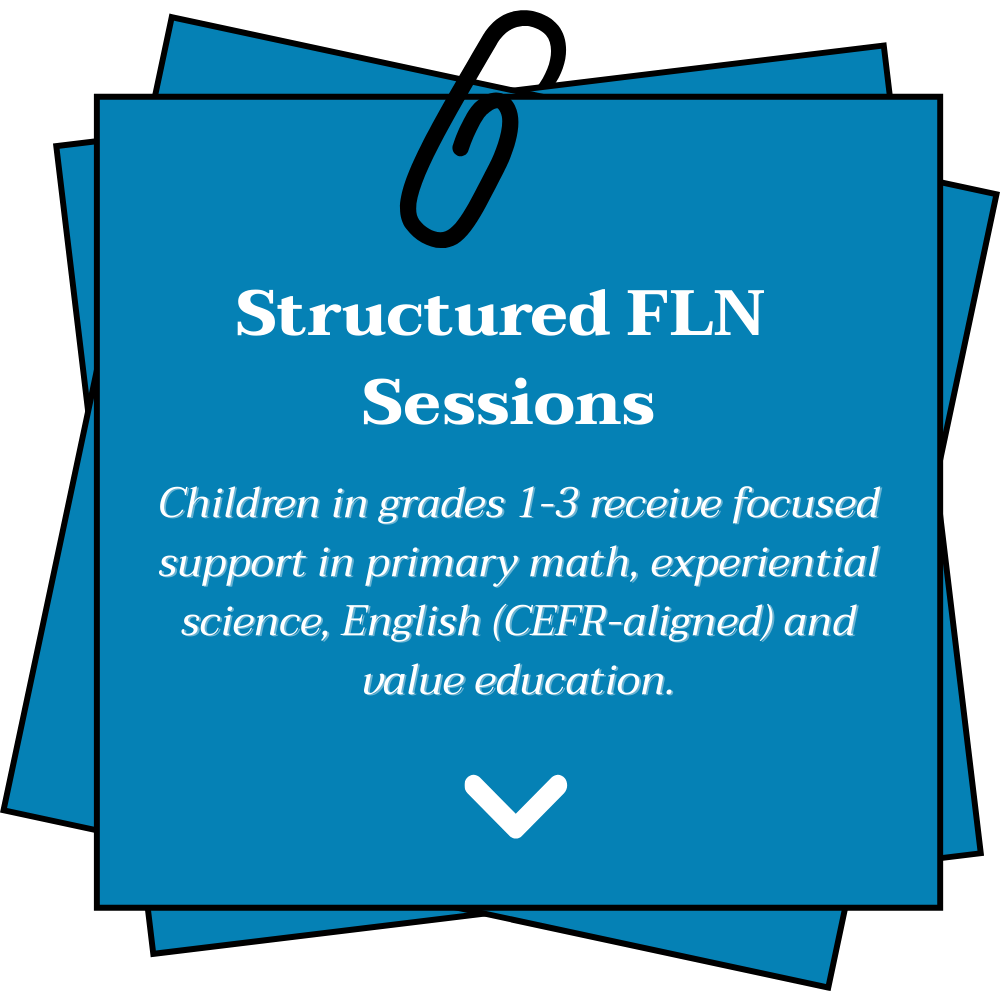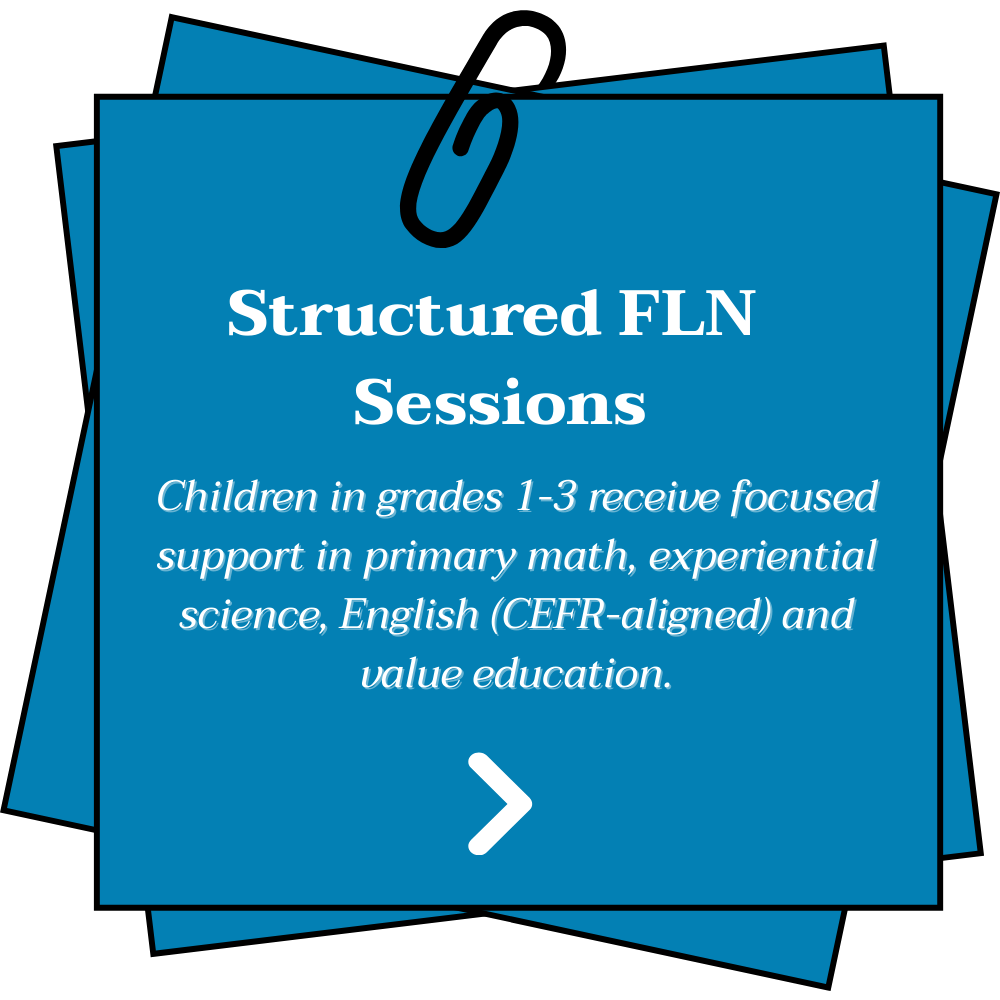 Strengthens foundational literacy and numeracy (FLN) for primary school children through structured in-school learning support.